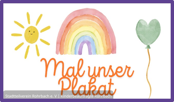 Und keine Sorge: Auch wenn dein Bild nicht ausgewählt wird, lohnt sich die Teilnahme. Alle eingereichten Kunstwerke werden danach im Foyer des Rohrbacher Kulturhauses ausgestellt! Der Stadtteilverein Rohrbach e. V. und die Kinderbeauftragte freuen sich bereits sehr auf viele tolle und bunte Bilder.